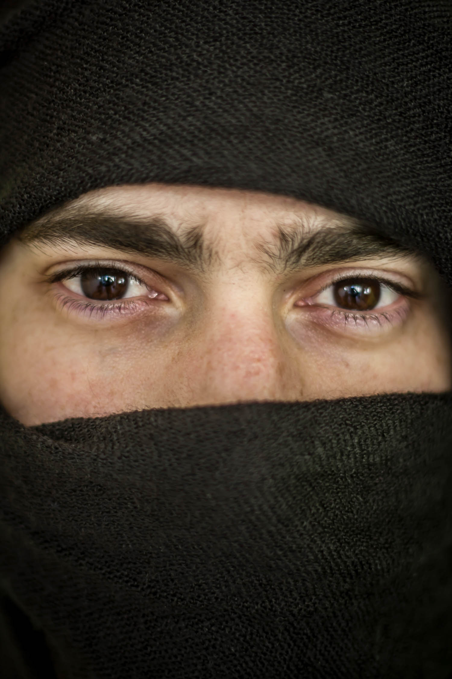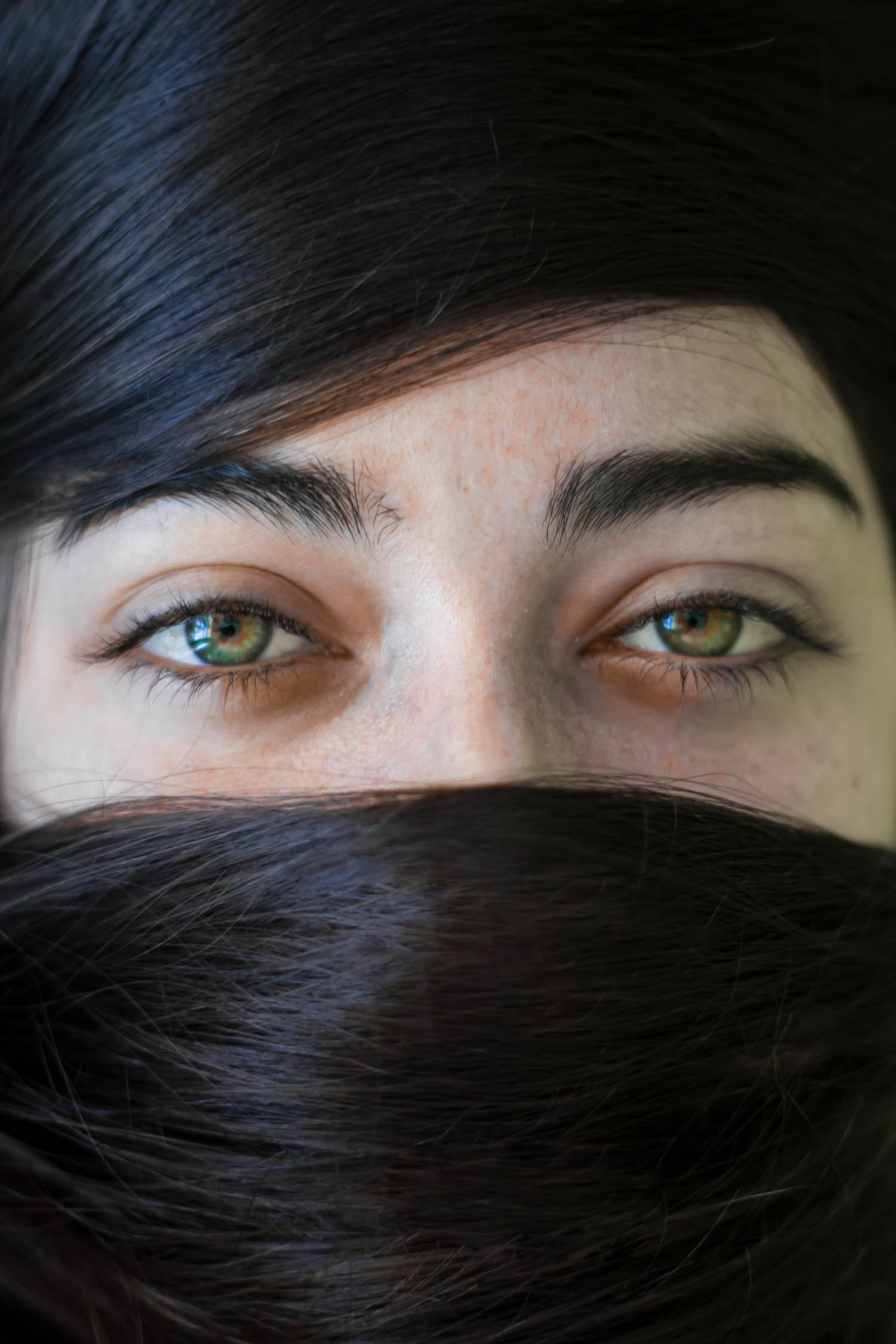 Esta es la primera serie de fotos conceptuales que hice. En algunas culturas las mujeres tienen que cubrir completamente sus rostros. En otras culturas, las mujeres no pueden mostrar su pelo real, teniendo que cubrirlo con pelucas. Por otra parte, en la mayoría de los casos los hombres no tienen que cubrir nada de sus rostros. Para esta serie quise invertir esa prohibición, cubriendo el rostro del hombre con tela mientras que la mujer estaría mostrando su cabello real en primer plano para cubrirse.