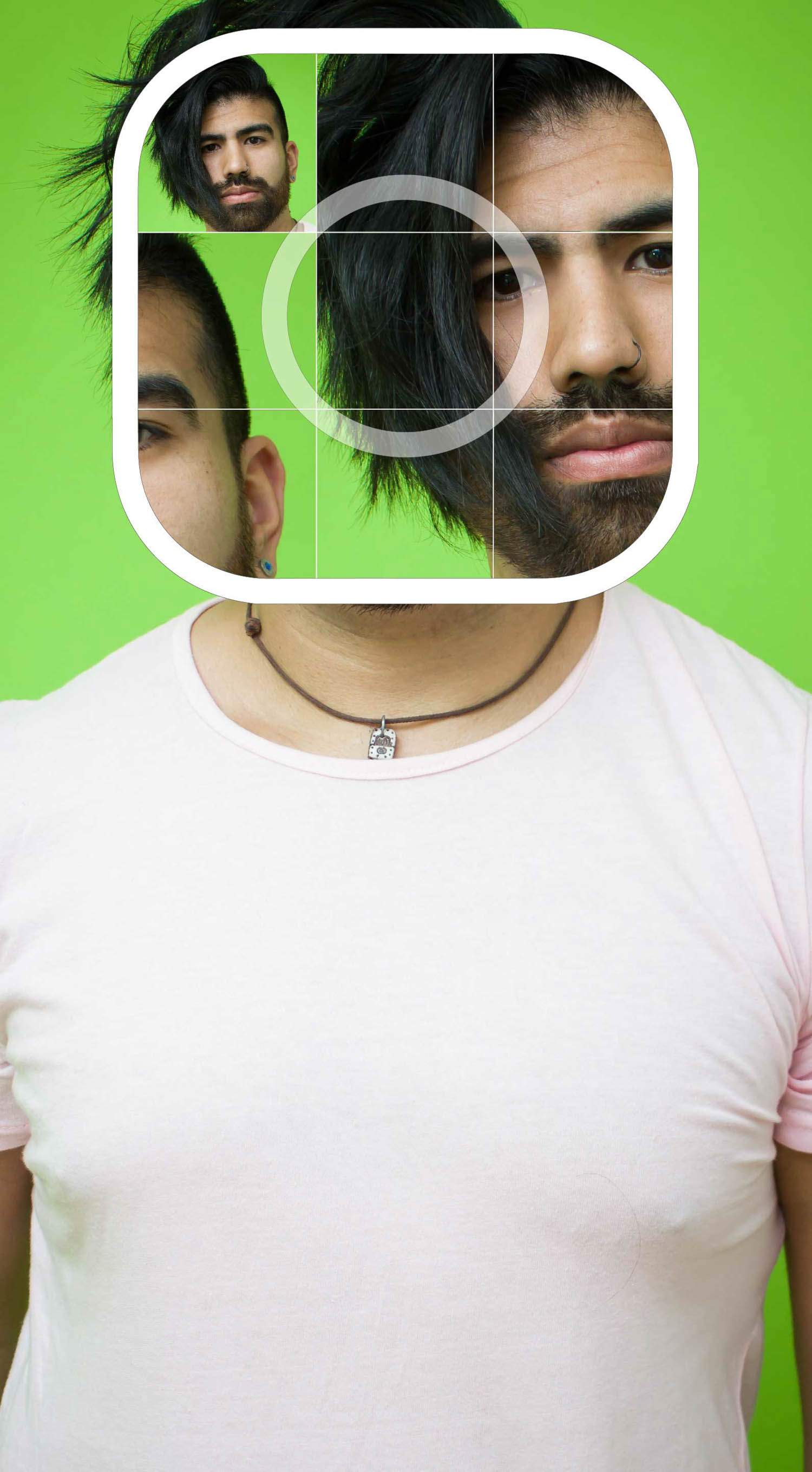 Para esta imagen quería mostrar el uso de la grilla de Instagram para agrandar una foto y dividirla en partes, obligando a la gente a que tenga que entrar al perfil del usuario para ver la foto entera. El problema de esa idea es que una foto sola mueve la grilla completamente, creando una figura distorsionado, con los ojos y la nariz dispuestos de una forma no realista. En eso, podemos encontrar una nueva forma de cubismo.
